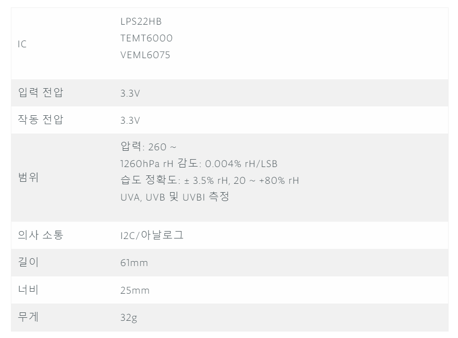 MKR ENV Shield를 사용하면 MKR 보드가 센서 어레이에서 수집한 환경 데이터를 수집할 수 있다. 이 센서는 최신 세대이며 기압, 온도, 습도, light, 자외선을 측정할 수 있다.