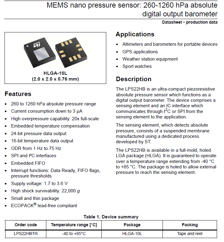 Arduino MKR SHIELD R2 기압 - ST LPS22HB