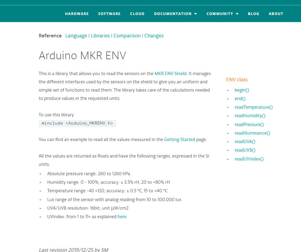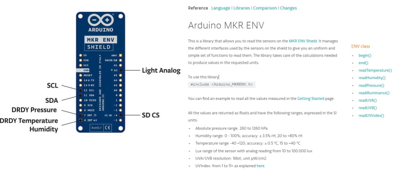 MKR ENV Shield를 사용하면 MKR 보드가 센서 어레이에서 수집한 환경 데이터를 수집할 수 있다. 이 센서는 최신 세대이며 다음을 측정한다.