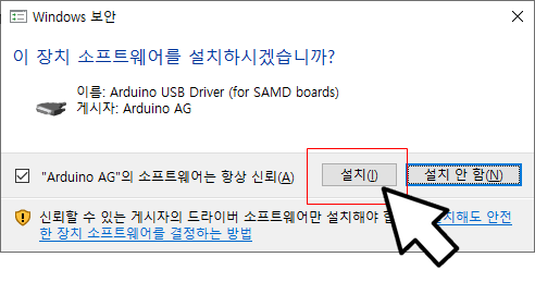 설치가 완료되면 , USB Driver가 자동으로 실행되면, "설치" 버튼을 클릭한다.